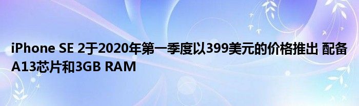 蘋果將??在2020年第一季度以399美元的價格推出iPhone SE 2。這款手機將配備A13芯片以及3GB RAM,該芯片也將在iPhone 11中使用。最新的報告來自分析師Ming-Chi Kuo,他在蘋果方面擁有可靠的記錄。
