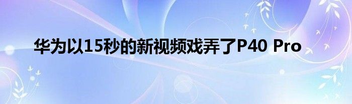 小編發現不少朋友對于華為以15秒的新視頻戲弄了P40 Pro這方面的信息都比較感興趣,小編就針對華為以15秒的新視頻戲弄了P40 Pro整理了一些相關方面的信息 在這里分享給大家。