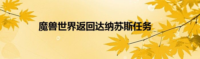 魔獸世界中返回達(dá)納蘇斯任務(wù)的流程是什么?大家和小編一起來看看吧。