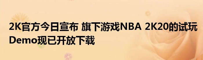 2K官方今日宣布,旗下游戲NBA 2K20的試玩Demo現(xiàn)已開放下載,玩家將正式可以試玩2K20。