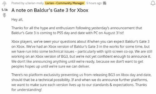 2. 《博德之門3》表示晚一些會推出XBox的版本