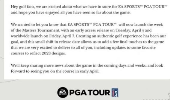 3月4日EA游戲公司宣布一條消息,公司旗下的《Pga巡回賽》將延長到4月4日正式上線,對這款游戲感興趣的玩家能夠搶先上線體驗。此款游戲在4月7日將在全球范圍內(nèi)正式發(fā)布,據(jù)傳本游戲支持簡體中文的模式。當(dāng)前游戲已經(jīng)開啟了預(yù)購,在國內(nèi)普通版售價298元,豪華版達(dá)到了378元的價格。