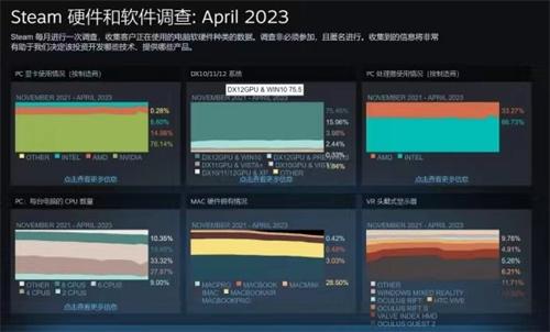 Windows10的使用率與3月份相比,下降幅度為12.74%,windows11的使用率,相比3月份提高10.98%,根據目前的相關數據推測分析一年之內windows11的使用率,肯定會反超windows10。6CPU與3月份相比同比下降12.29%,依然保持第1位。簡醇方面的幅度變化也比較大,1GB,2GB以及4GB的顯存使用率上升,6GB,8GB和12GB的使用率下降。簡體中文在3月份激增,4月份卻下降26.6%,英文再次成為最常用的語言。