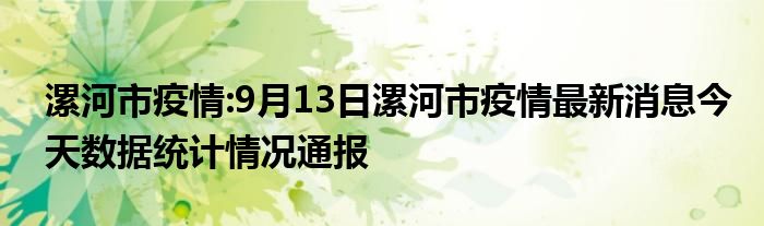 漯河市疫情:9月13日漯河市疫情最新消息今天數據統計情況通報,截至9月13日04時00分漯河市疫情數據統計情況。( 以下數據來源:新浪疫情實時更新數據 )