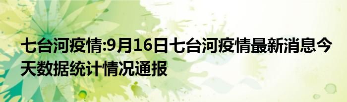 七臺河疫情:9月16日七臺河疫情最新消息今天數據統計情況通報,截至9月16日07時00分七臺河疫情數據統計情況。( 以下數據來源:新浪疫情實時更新數據 )