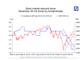 在經(jīng)歷了大蕭條以來最糟糕的12月之后,標(biāo)準(zhǔn)普爾500指數(shù)在30多年中創(chuàng)下了1月份的最佳成績,并將在2月份以強(qiáng)勢(shì)票據(jù)結(jié)束。許多人認(rèn)為市場(chǎng)驅(qū)動(dòng)因素對(duì)于與中國達(dá)成貿(mào)易協(xié)議的不斷增長的樂觀情緒以及美聯(lián)儲(chǔ)更加“耐心”的緊縮政策。然而,增長預(yù)期并未跟上市場(chǎng)反彈的步伐,一些經(jīng)濟(jì)指標(biāo)預(yù)示著未來會(huì)出現(xiàn)更多疲軟。