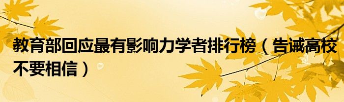 大家好,綜合小編來為大家講解下。教育部回應(yīng)最有影響力學(xué)者排行榜,告誡高校不要相信很多人還不知道,現(xiàn)在讓我們一起來看看吧!
