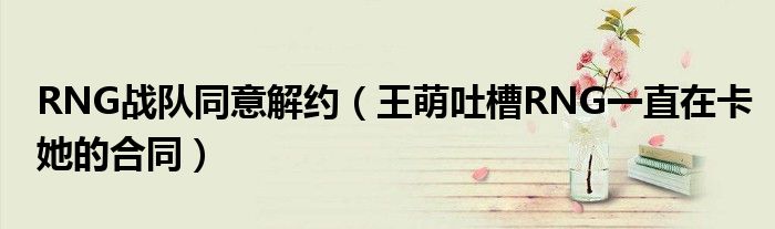 大家好,綜合小編來為大家講解下。RNG戰(zhàn)隊同意解約,王萌吐槽RNG一直在卡她的合同很多人還不知道,現在讓我們一起來看看吧!