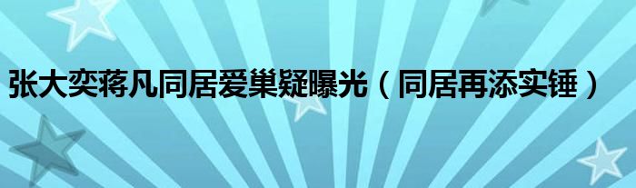 大家好,綜合小編來為大家講解下。張大奕蔣凡同居愛巢疑曝光,同居再添實錘很多人還不知道,現(xiàn)在讓我們一起來看看吧!