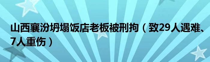 大家好,綜合小編來為大家講解下。山西襄汾坍塌飯店老板被刑拘,致29人遇難、7人重傷很多人還不知道,現(xiàn)在讓我們一起來看看吧!