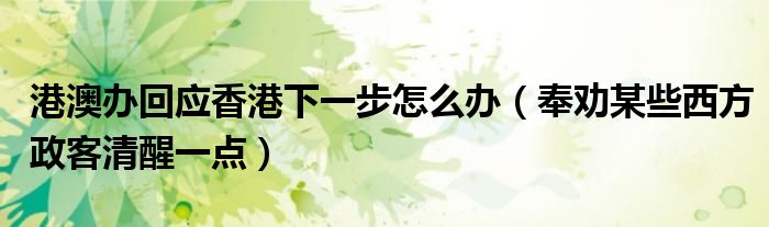 大家好,綜合小編來為大家講解下。港澳辦回應香港下一步怎么辦,奉勸某些西方政客清醒一點很多人還不知道,現在讓我們一起來看看吧!