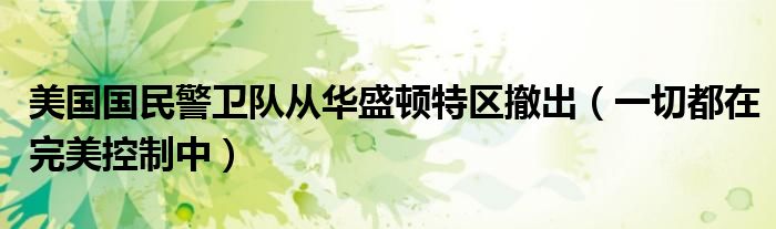 大家好,綜合小編來為大家講解下。美國國民警衛(wèi)隊從華盛頓特區(qū)撤出,一切都在完美控制中很多人還不知道,現(xiàn)在讓我們一起來看看吧!