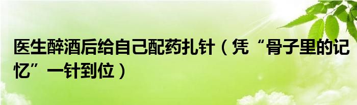 大家好,綜合小編來為大家講解下。醫生醉酒后給自己配藥扎針,憑“骨子里的記憶”一針到位很多人還不知道,現在讓我們一起來看看吧!