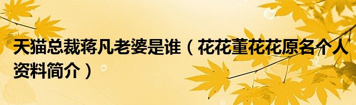 大家好,綜合小編來(lái)為大家講解下。天貓總裁蔣凡老婆是誰(shuí),花花董花花原名個(gè)人資料簡(jiǎn)介很多人還不知道,現(xiàn)在讓我們一起來(lái)看看吧!