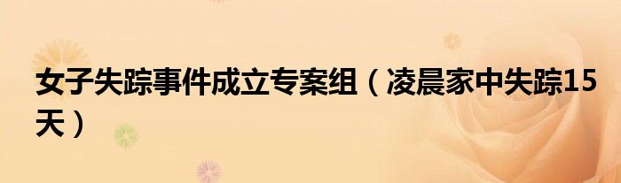大家好,綜合小編來為大家講解下。女子失蹤事件成立專案組,凌晨家中失蹤15天很多人還不知道,現(xiàn)在讓我們一起來看看吧!