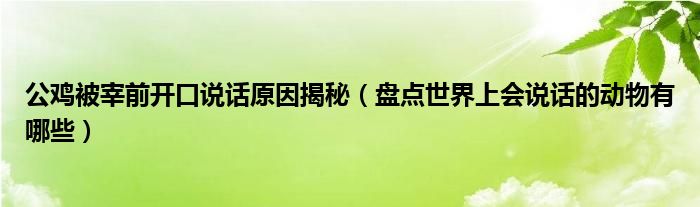 大家好,綜合小編來為大家講解下。公雞被宰前開口說話原因揭秘,盤點世界上會說話的動物有哪些很多人還不知道,現在讓我們一起來看看吧!