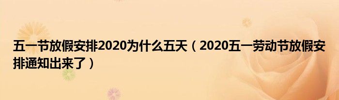 大家好,綜合小編來為大家講解下。五一節放假安排2020為什么五天,2020五一勞動節放假安排通知出來了很多人還不知道,現在讓我們一起來看看吧!