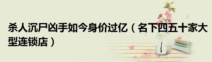 大家好,綜合小編來為大家講解下。殺人沉尸兇手如今身價過億,名下四五十家大型連鎖店很多人還不知道,現在讓我們一起來看看吧!