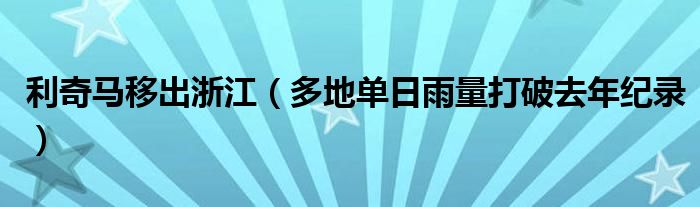 大家好,綜合小編來為大家講解下。利奇馬移出浙江,多地單日雨量打破去年紀錄很多人還不知道,現在讓我們一起來看看吧!