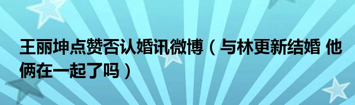 大家好,綜合小編來為大家講解下。王麗坤點贊否認婚訊微博,與林更新結婚 他倆在一起了嗎很多人還不知道,現在讓我們一起來看看吧!