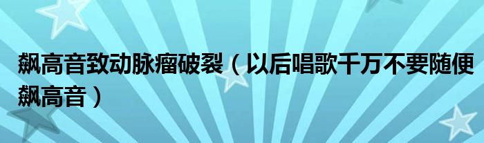 大家好,綜合小編來為大家講解下。飆高音致動脈瘤破裂,以后唱歌千萬不要隨便飆高音很多人還不知道,現在讓我們一起來看看吧!