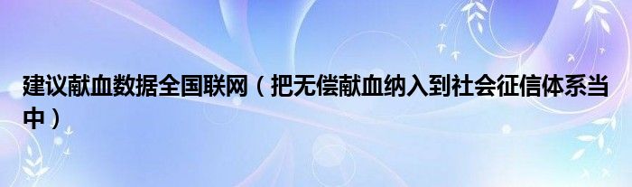 大家好,綜合小編來為大家講解下。建議獻血數據全國聯網,把無償獻血納入到社會征信體系當中很多人還不知道,現在讓我們一起來看看吧!