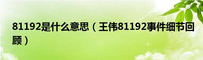 大家好,綜合小編來為大家講解下。81192是什么意思,王偉81192事件細節回顧很多人還不知道,現在讓我們一起來看看吧!