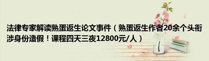 大家好,綜合小編來為大家講解下。法律專家解讀熟蛋返生論文事件,熟蛋返生作者20余個頭銜涉身份造假!課程四天三夜12800元/人很多人還不知道,現(xiàn)在讓我們一起來看看吧!