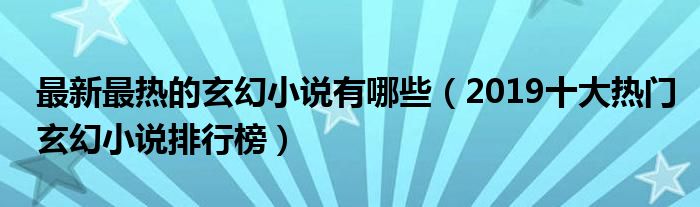 大家好,綜合小編來為大家講解下。最新最熱的玄幻小說有哪些,2019十大熱門玄幻小說排行榜很多人還不知道,現在讓我們一起來看看吧!