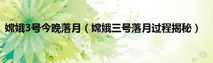 大家好,綜合小編來(lái)為大家講解下。嫦娥3號(hào)今晚落月,嫦娥三號(hào)落月過(guò)程揭秘很多人還不知道,現(xiàn)在讓我們一起來(lái)看看吧!