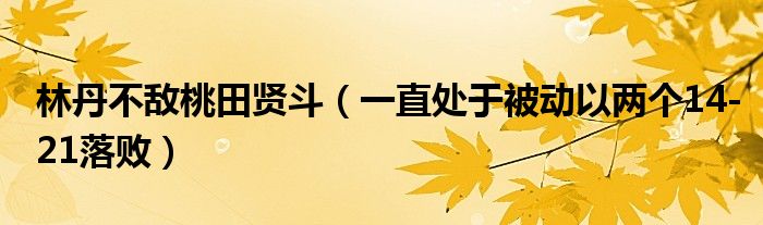 大家好,綜合小編來為大家講解下。林丹不敵桃田賢斗,一直處于被動以兩個14-21落敗很多人還不知道,現在讓我們一起來看看吧!
