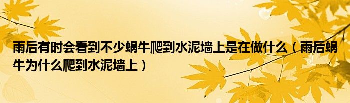 大家好,綜合小編來為大家講解下。雨后有時會看到不少蝸牛爬到水泥墻上是在做什么,雨后蝸牛為什么爬到水泥墻上很多人還不知道,現在讓我們一起來看看吧!