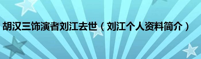 大家好,綜合小編來為大家講解下。胡漢三飾演者劉江去世,劉江個人資料簡介很多人還不知道,現在讓我們一起來看看吧!