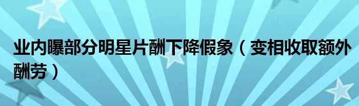 大家好,綜合小編來為大家講解下。業內曝部分明星片酬下降假象,變相收取額外酬勞很多人還不知道,現在讓我們一起來看看吧!