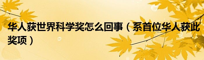 大家好,綜合小編來為大家講解下。華人獲世界科學獎怎么回事,系首位華人獲此獎項很多人還不知道,現在讓我們一起來看看吧!