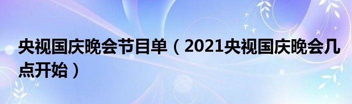 大家好,綜合小編來為大家講解下。央視國慶晚會節(jié)目單,2021央視國慶晚會幾點(diǎn)開始很多人還不知道,現(xiàn)在讓我們一起來看看吧!