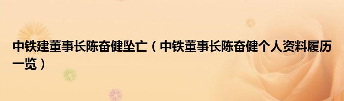 大家好,綜合小編來為大家講解下。中鐵建董事長陳奮健墜亡,中鐵董事長陳奮健個人資料履歷一覽很多人還不知道,現在讓我們一起來看看吧!