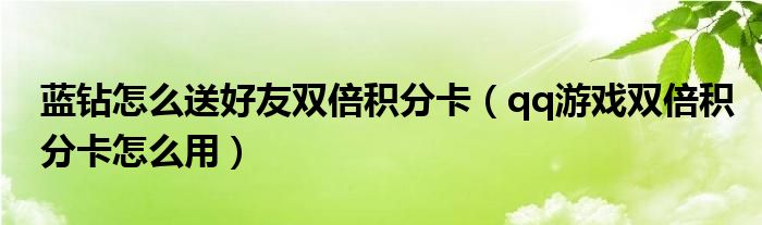 經常玩qq的人都知道qq當中有藍鉆可以送給好友雙倍積分卡,但是很多人不知道藍鉆怎么送好友雙倍積分卡?qq游戲雙倍積分卡怎么用?一起來看看吧。