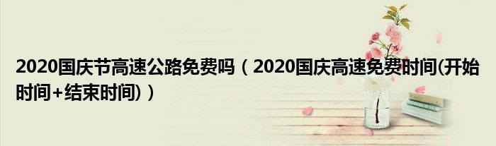 大家好,綜合小編來為大家講解下。2020國慶節高速公路免費嗎,2020國慶高速免費時間(開始時間+結束時間)很多人還不知道,現在讓我們一起來看看吧!