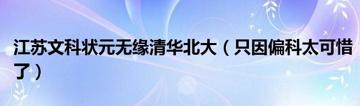 大家好,綜合小編來為大家講解下。江蘇文科狀元無緣清華北大,只因偏科太可惜了很多人還不知道,現在讓我們一起來看看吧!