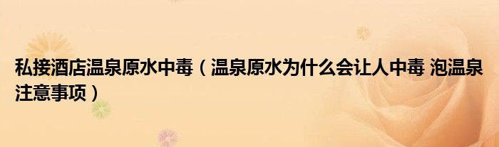 大家好,綜合小編來為大家講解下。私接酒店溫泉原水中毒,溫泉原水為什么會讓人中毒 泡溫泉注意事項很多人還不知道,現(xiàn)在讓我們一起來看看吧!