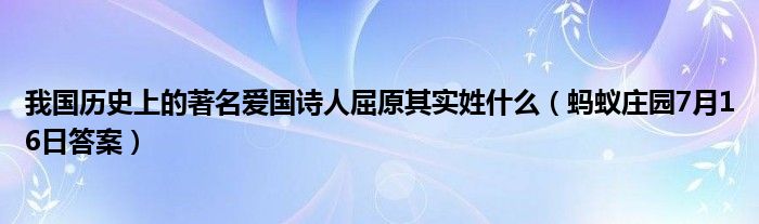 大家好,綜合小編來為大家講解下。我國歷史上的著名愛國詩人屈原其實姓什么,螞蟻莊園7月16日答案很多人還不知道,現在讓我們一起來看看吧!