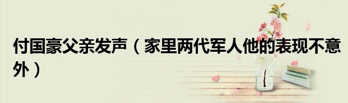 大家好,綜合小編來為大家講解下。付國豪父親發(fā)聲,家里兩代軍人他的表現(xiàn)不意外很多人還不知道,現(xiàn)在讓我們一起來看看吧!