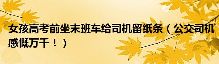 大家好,綜合小編來為大家講解下。女孩高考前坐末班車給司機留紙條,公交司機感慨萬千!很多人還不知道,現在讓我們一起來看看吧!