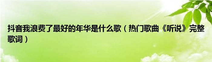大家好,綜合小編來為大家講解下。抖音我浪費了最好的年華是什么歌,熱門歌曲《聽說》完整歌詞很多人還不知道,現(xiàn)在讓我們一起來看看吧!