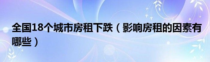 大家好,綜合小編來為大家講解下。全國18個城市房租下跌,影響房租的因素有哪些很多人還不知道,現在讓我們一起來看看吧!