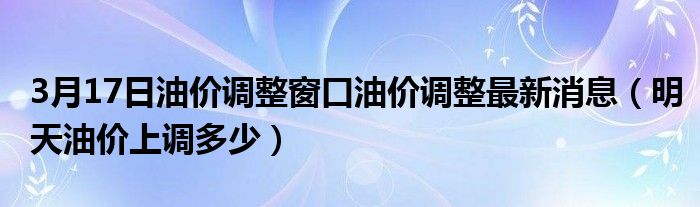 大家好,綜合小編來為大家講解下。3月17日油價調(diào)整窗口油價調(diào)整最新消息,明天油價上調(diào)多少很多人還不知道,現(xiàn)在讓我們一起來看看吧!