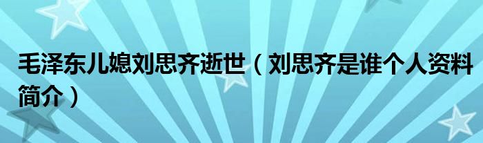 大家好,綜合小編來為大家講解下。毛澤東兒媳劉思齊逝世,劉思齊是誰個人資料簡介很多人還不知道,現在讓我們一起來看看吧!