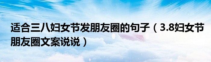 大家好,綜合小編來為大家講解下。適合三八婦女節發朋友圈的句子,3.8婦女節朋友圈文案說說很多人還不知道,現在讓我們一起來看看吧!