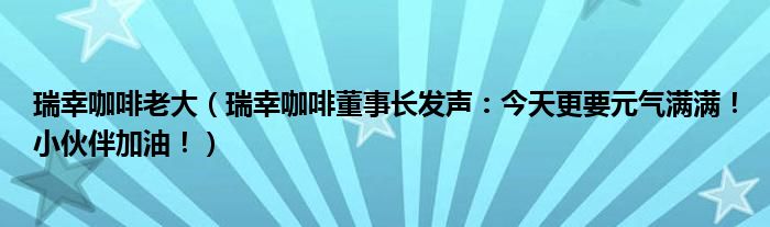 大家好,綜合小編來為大家講解下。瑞幸咖啡老大,瑞幸咖啡董事長發聲:今天更要元氣滿滿!小伙伴加油!很多人還不知道,現在讓我們一起來看看吧!